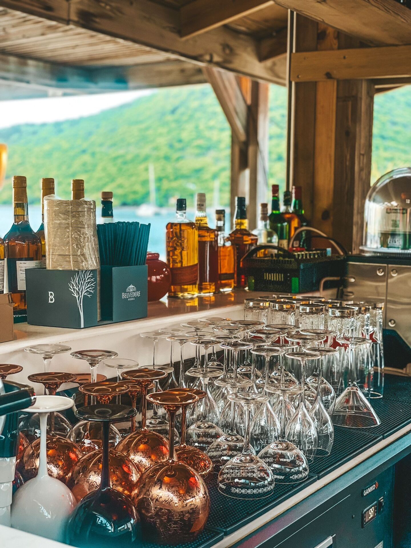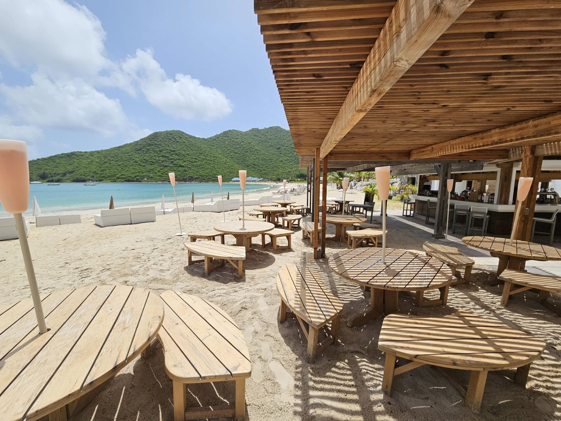The bar serves creative drinks, premium spirits and gourmet bites, all set against the shimmering Caribbean horizon.
