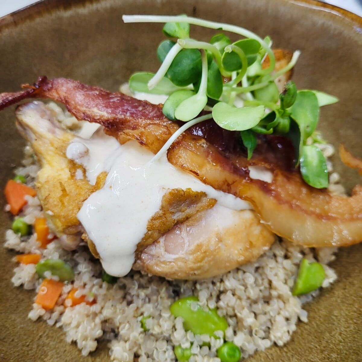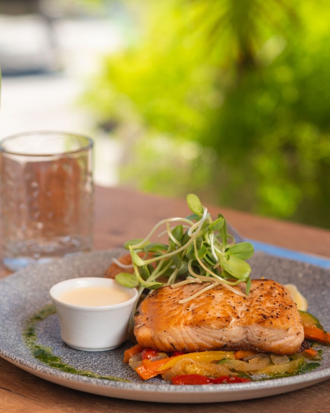 On the terrace, laughter flows easily and the vibe stays easygoing, while a few colorful peacocks and curious iguanas sometimes wander through, adding a touch of island charm. During happy hour, a well-crafted cocktail is the perfect companion for these simple, feel-good moments.