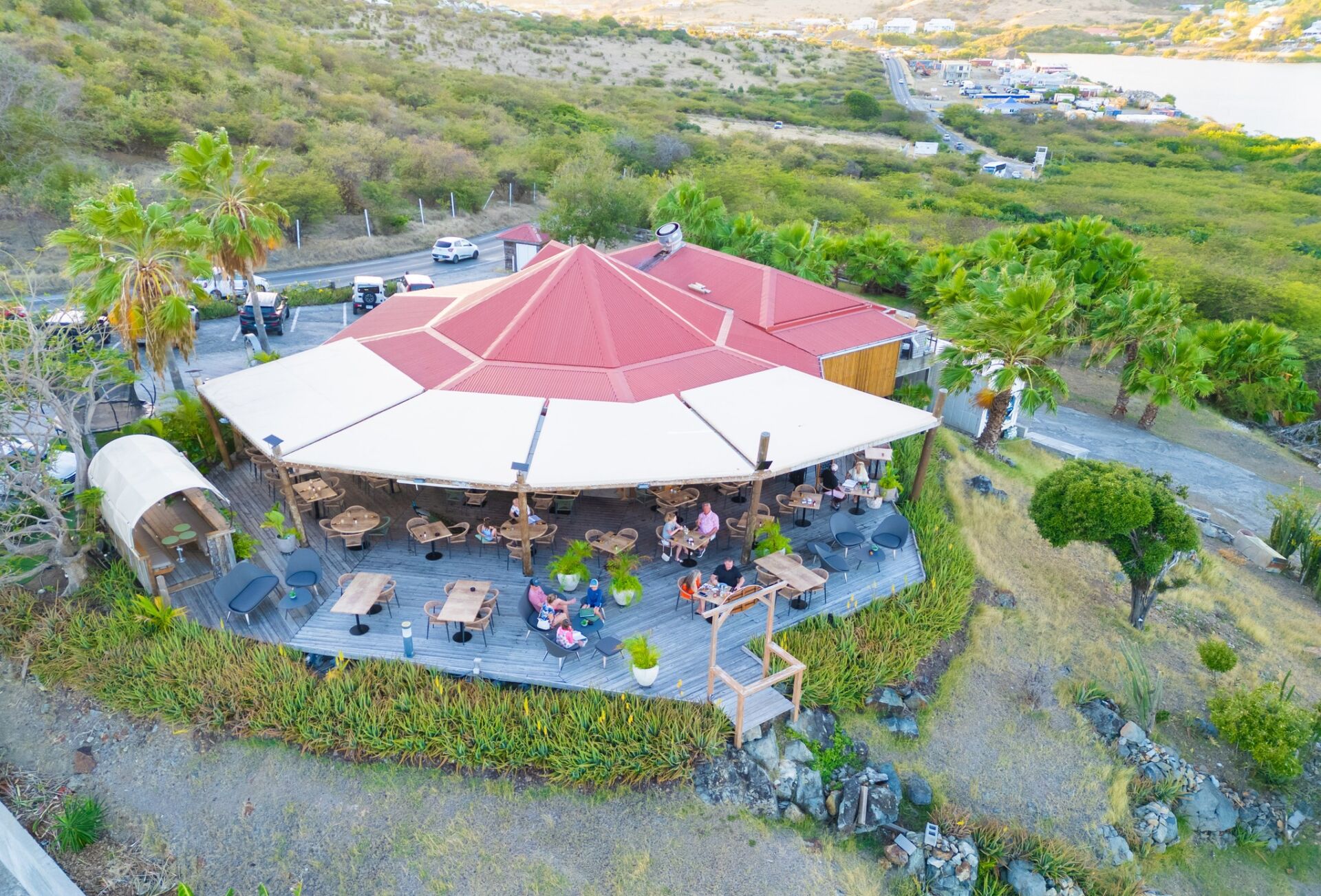 Perched above Orient Bay, Rancho Del Sol has been one of the island’s most beloved spots for over 17 years. Its standout feature? A 180° panoramic view over Orient Bay, stunning at any time of day and especially unforgettable at sunset.