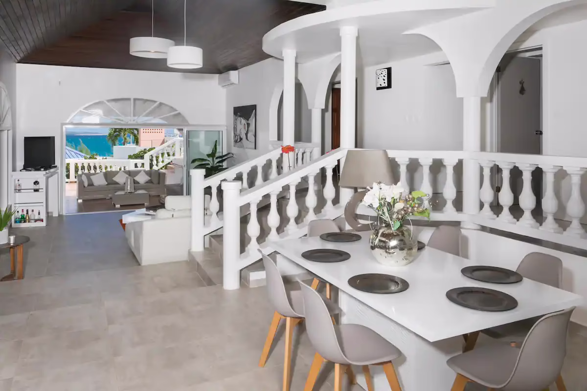 Avec ses vues imprenables sur l’île Pinel et Little Cay, la villa offre une expérience privilégiée de la vie tropicale. La terrasse spacieuse est parfaite pour les repas en plein air, tandis que la piscine privée au niveau inférieur t’invite à te détendre au soleil avec des vues panoramiques sur l’océan.