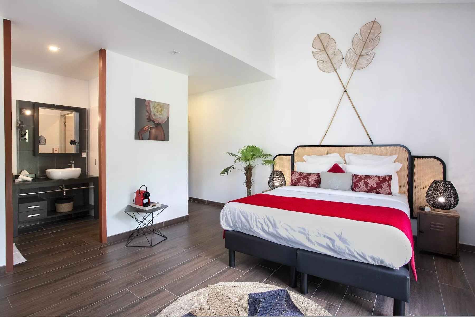 Chaque suite, décorée avec son propre style, dispose d’un lit queen-size, d’une salle de bain privative, d’un dressing, d’un coffre-fort et d’une machine Nespresso — combinant le confort d’un hôtel haut de gamme avec l’intimité d’une maison privée.