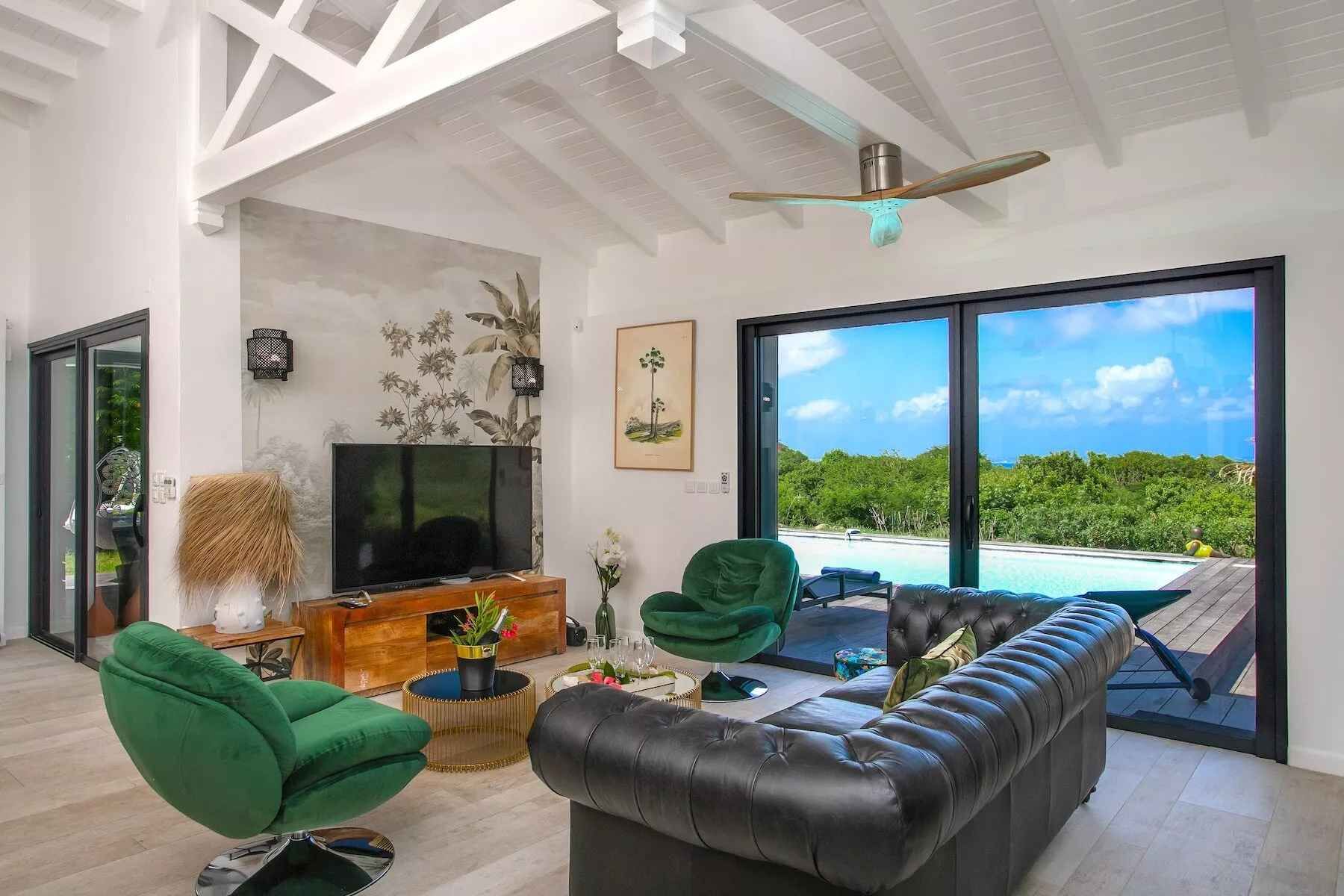 Cette élégante villa de trois chambres offre une retraite exotique et paisible, avec des vues spectaculaires sur les eaux turquoise des Caraïbes qui s’étendent jusqu’à l’île d’Anguilla.