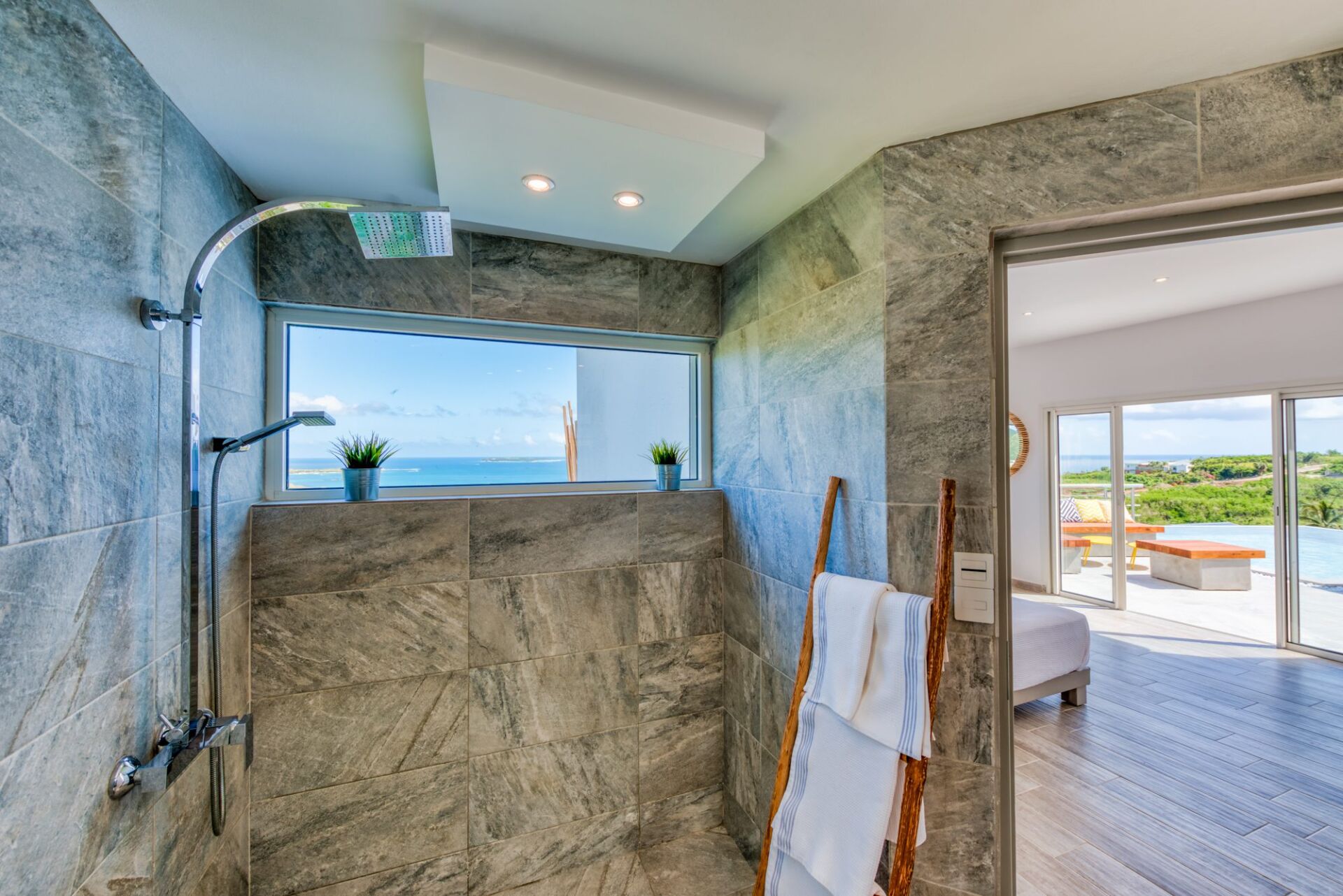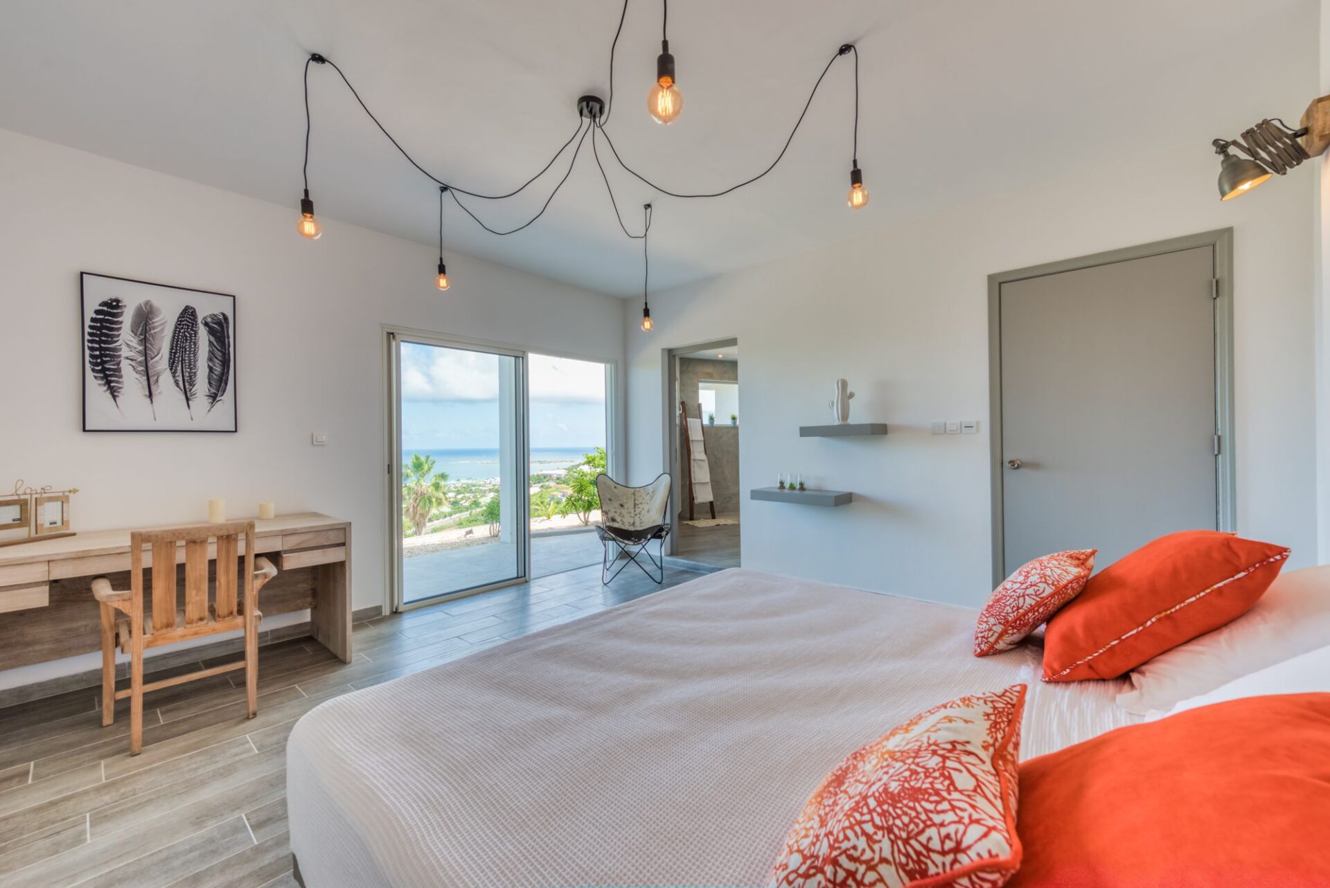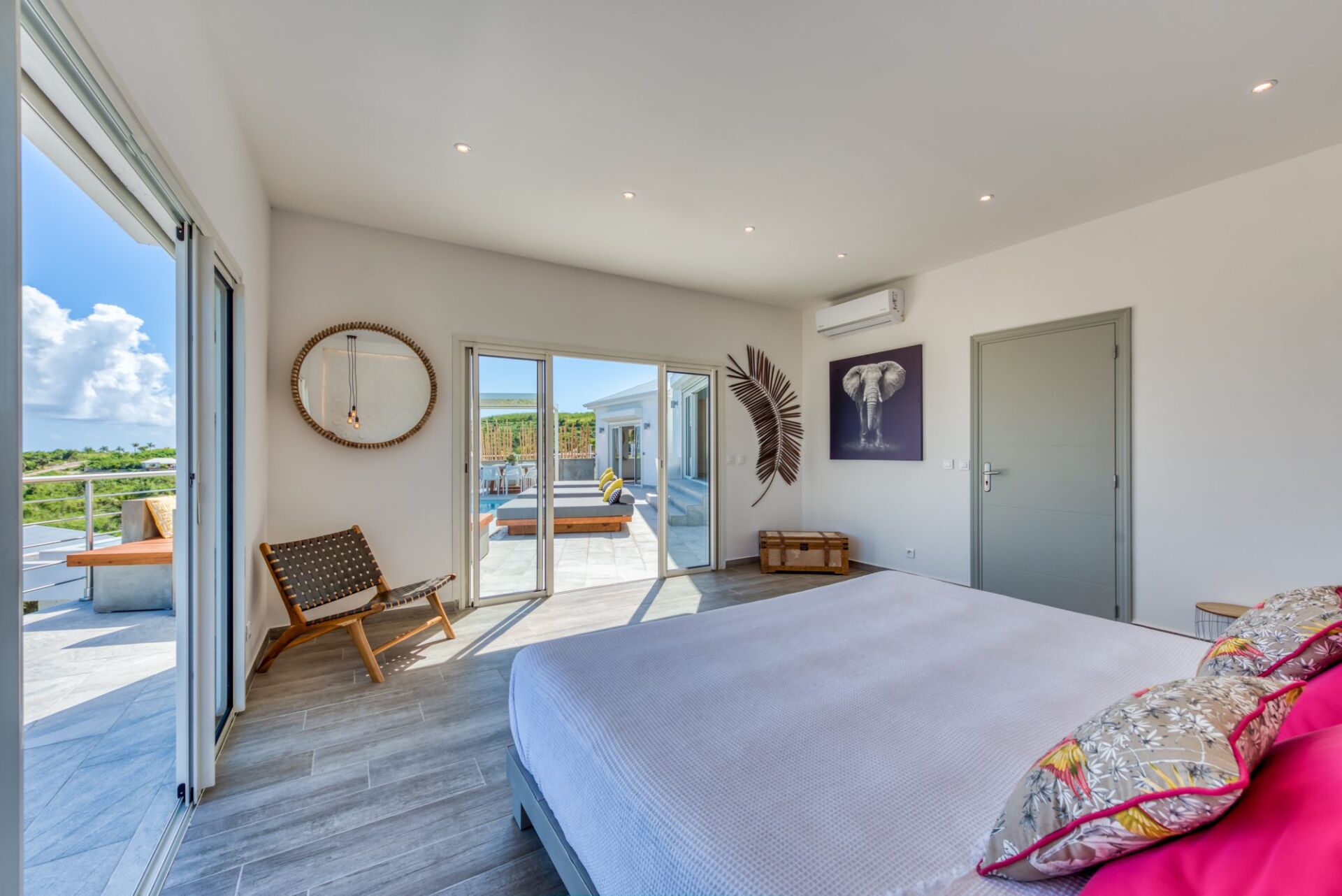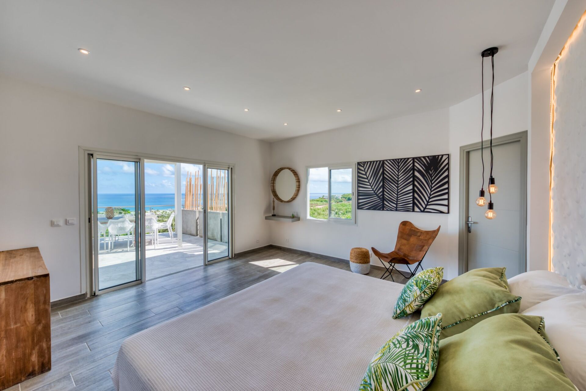 La villa dispose de trois spacieuses chambres doubles, chacune équipée d’un lit king-size, d’une salle de bain privative, d’un dressing et d’une vue mer imprenable. Chaque matin commence ici face au bleu infini de l’océan.