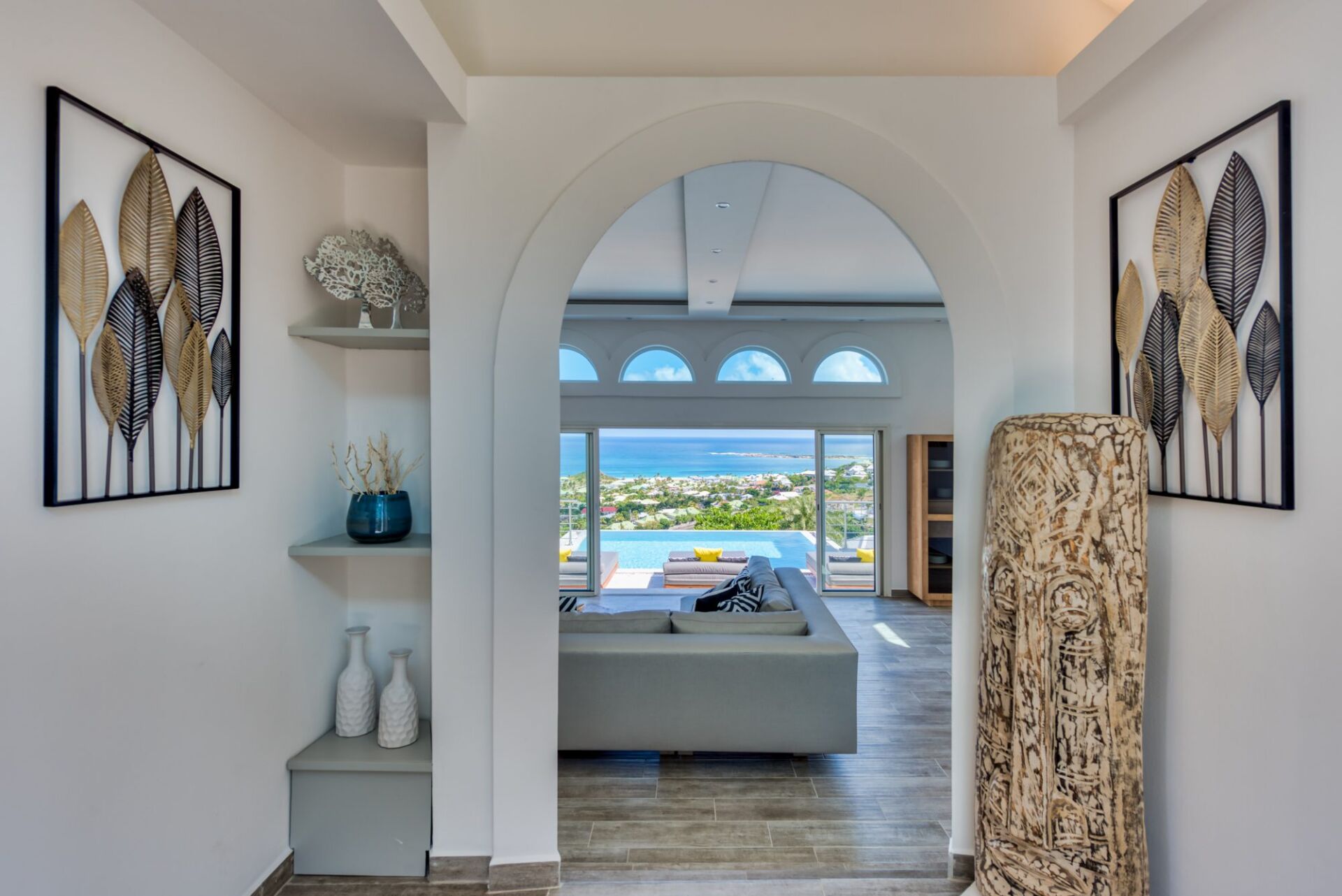 Perchée sur les hauteurs d’Orient Bay, cette élégante villa de luxe offre une parenthèse de calme avec une vue spectaculaire sur la mer des Caraïbes. Entourée de paysages préservés, elle combine architecture raffinée, confort moderne et atmosphère apaisante — le cadre parfait pour un séjour d’exception sur l’île.