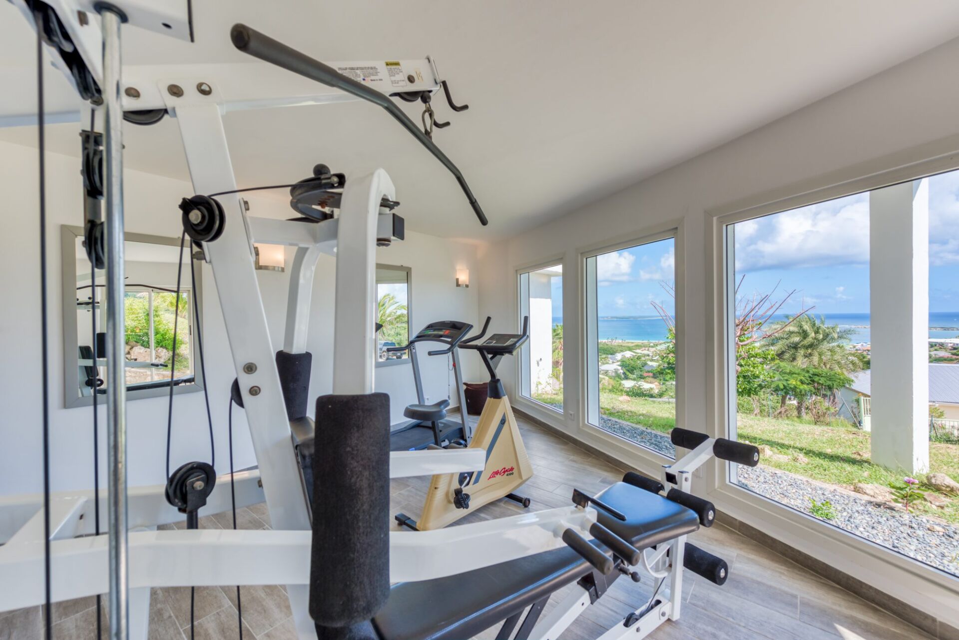 Pour celles et ceux qui souhaitent rester actifs pendant leur séjour, la villa dispose également d’une salle de fitness privée équipée de matériel professionnel.