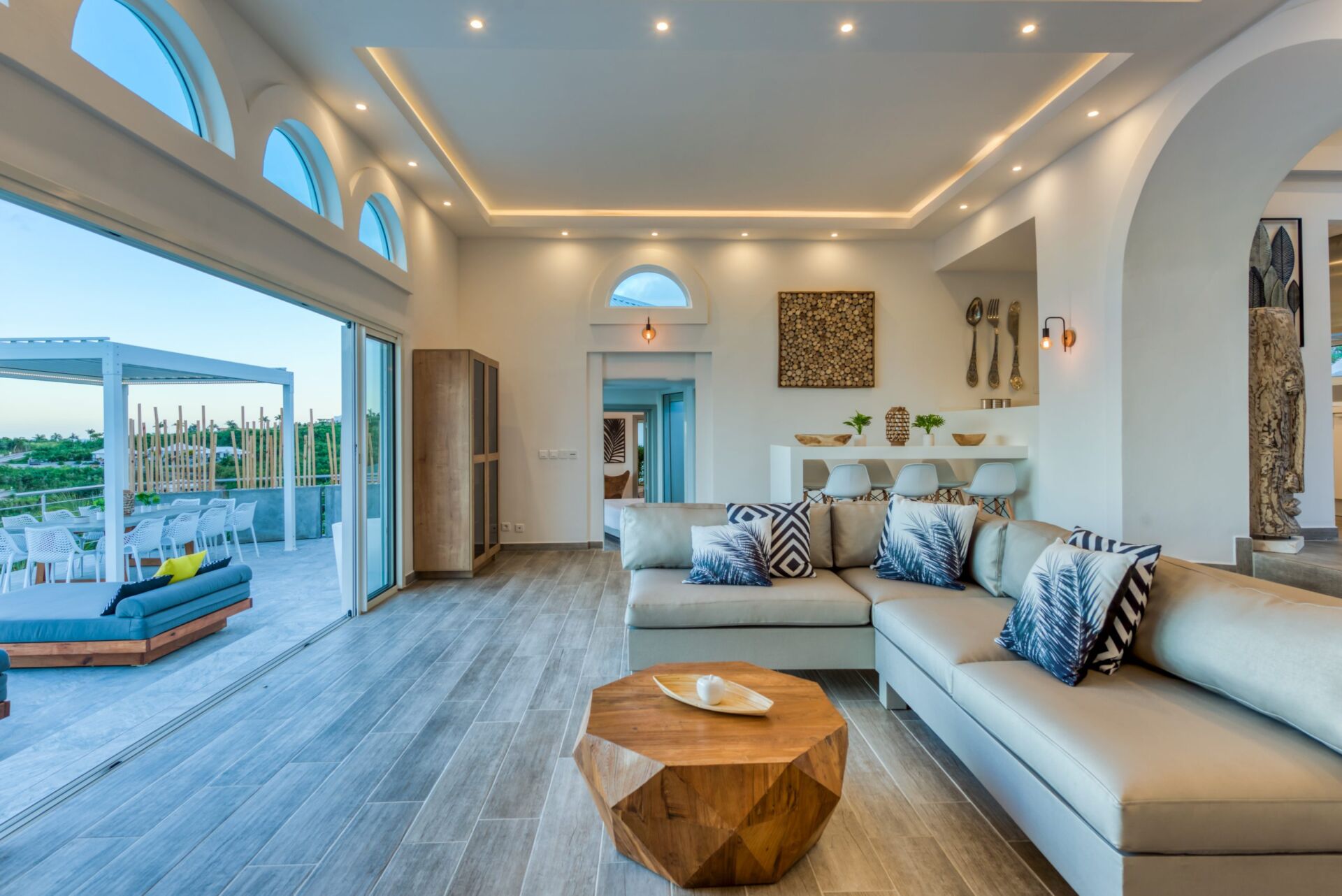 Les espaces de vie ont été conçus pour une détente naturelle et conviviale. Le salon lumineux s’ouvre sur la terrasse panoramique, créant une continuité harmonieuse entre intérieur et extérieur. Climatisation, équipements haut de gamme et atmosphère élégante assurent un confort absolu à tout moment de la journée. Que ce soit pour savourer un cocktail au coucher du soleil ou partager un dîner entre amis, chaque instant invite à la douceur de vivre.