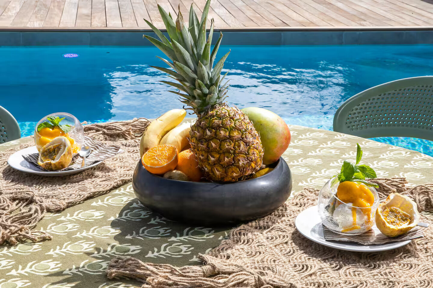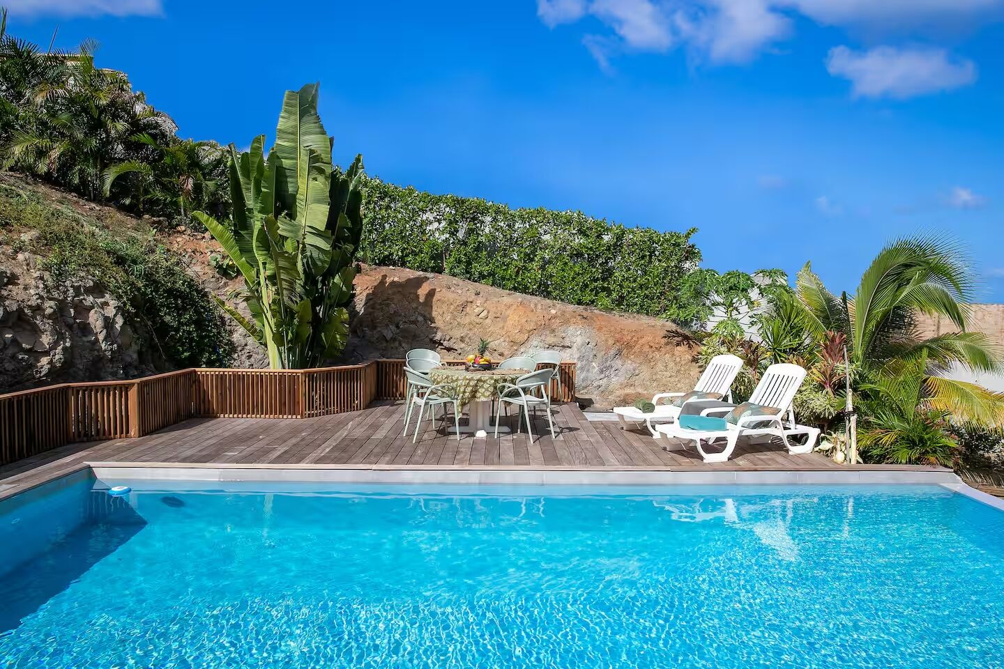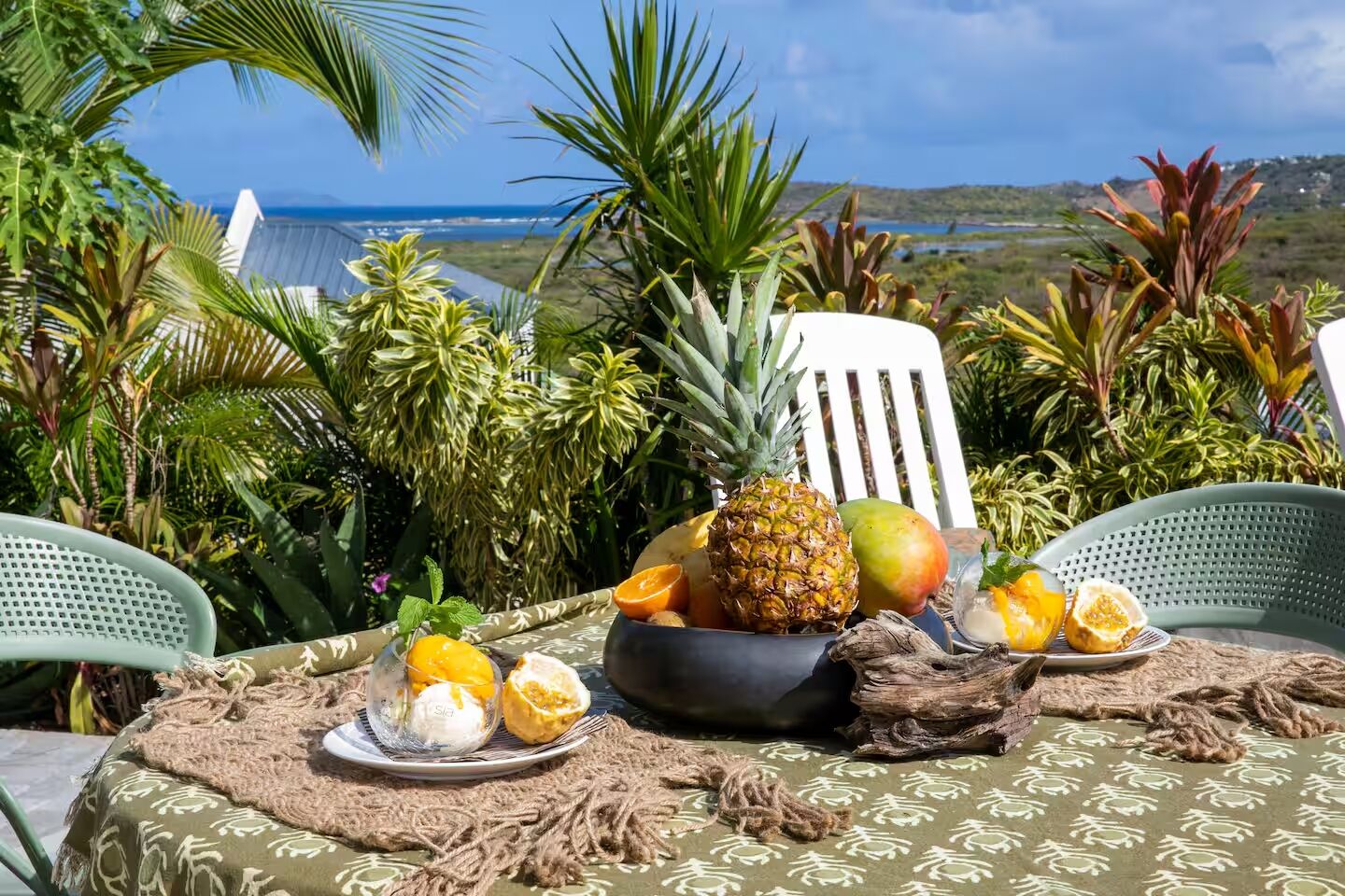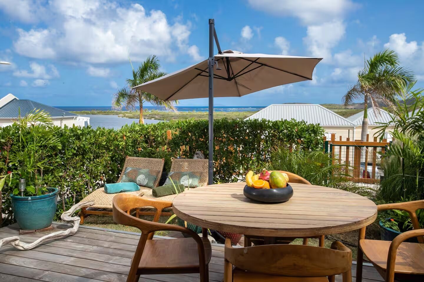 • A private, sun-drenched terrace with breathtaking ocean views—including Saint Barthélemy—ideal for sunrise coffees or sunset cocktails