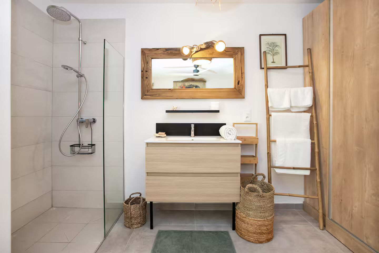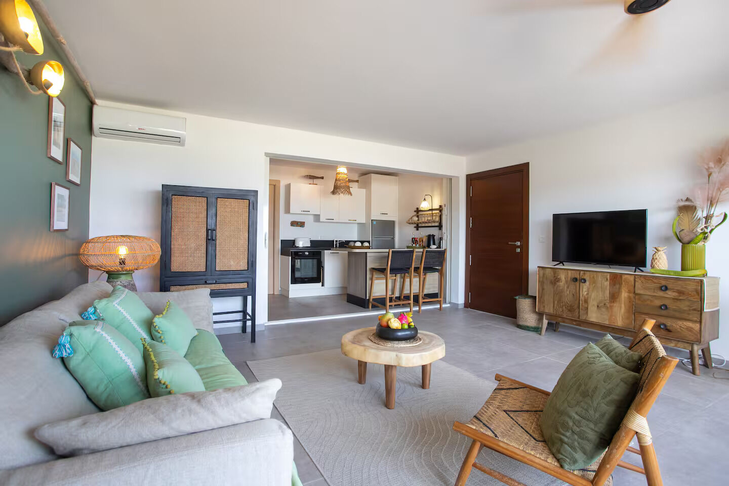 Welcome to Balaou, your peaceful island hideaway nestled in the quiet hills of “Les Hauts de la Baie” residence. Ideally located just a 15-minute walk (or a quick 4-minute drive) from both Orient Bay Beach and the pristine Galion Beach nature reserve, this apartment offers the perfect balance of convenience and serenity.