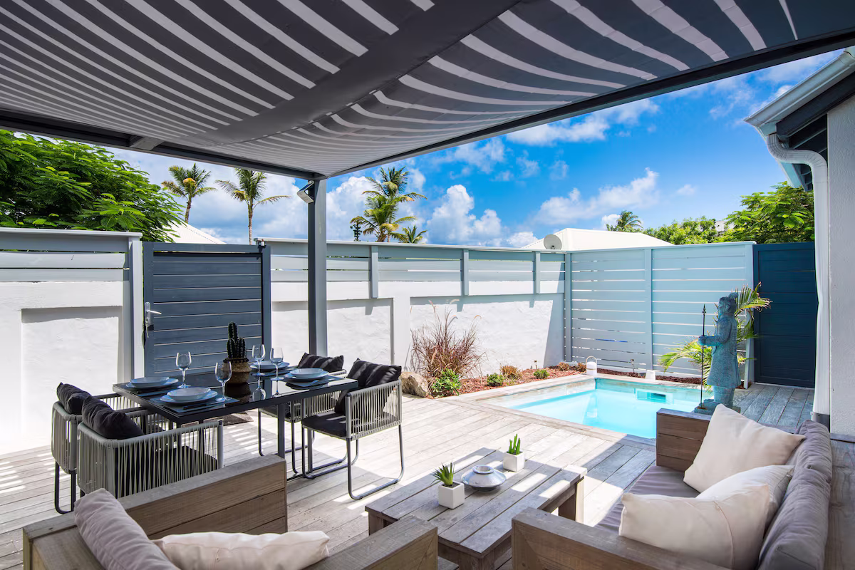 La Petite Maison Chouchou sits in a quiet, safe neighborhood, just a 5-minute walk from the beach and the lively village square with its many restaurants and weekend vibes.