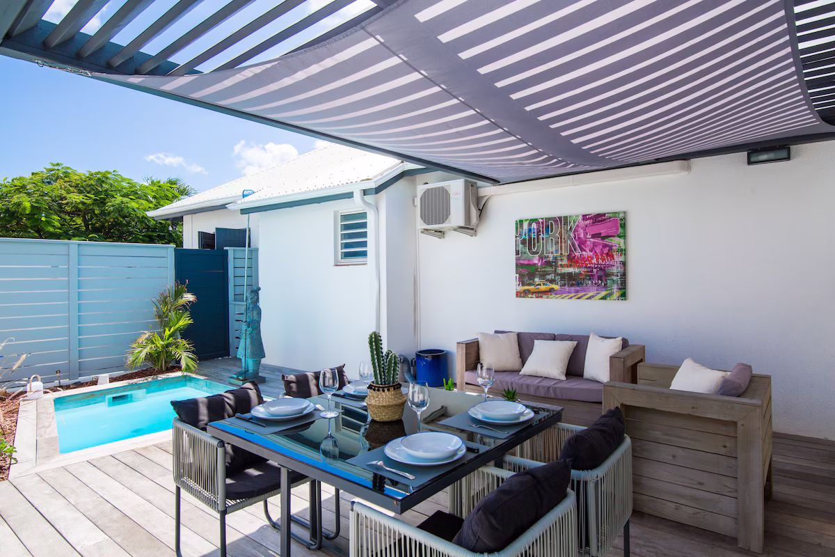 Hi, we are Anne & Philippe. We’ve designed our bungalow with love and care so you can feel right at home and enjoy every moment of your stay. Relax on the covered terrace with a local rum ti’ punch, take a dip in your private pool after the beach, or stroll just 200m to the sand.