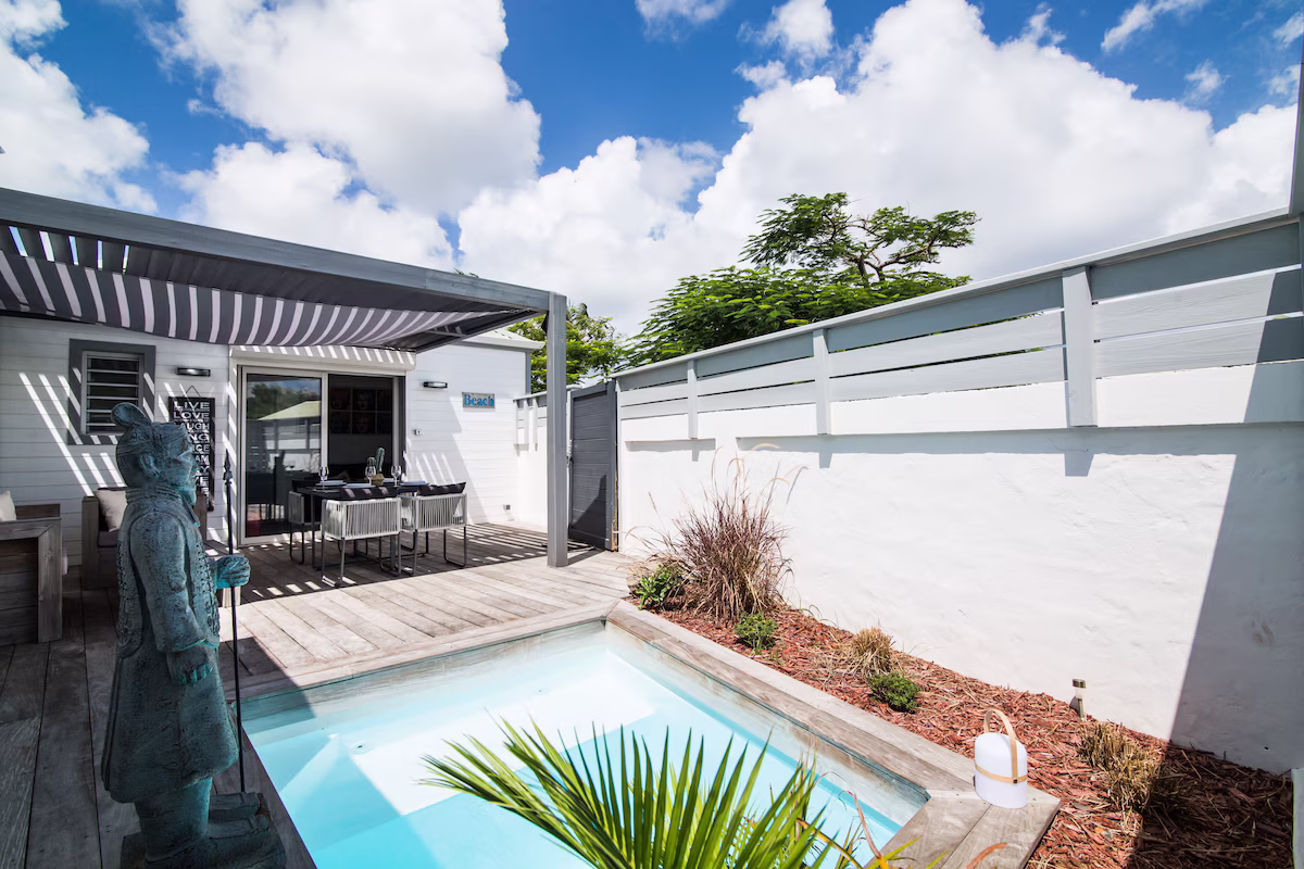 Equipped with all the amenities needed for an unforgettable stay, this retreat allows for moments of peace and relaxation in a cozy setting shielded from the outside world. The inclusion of a small private pool provides an ideal spot to cool down. Relax after a day soaking up the sun at the beach, ensuring your privacy throughout your stay.