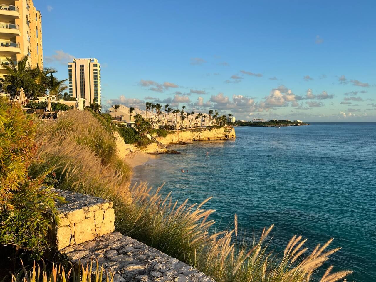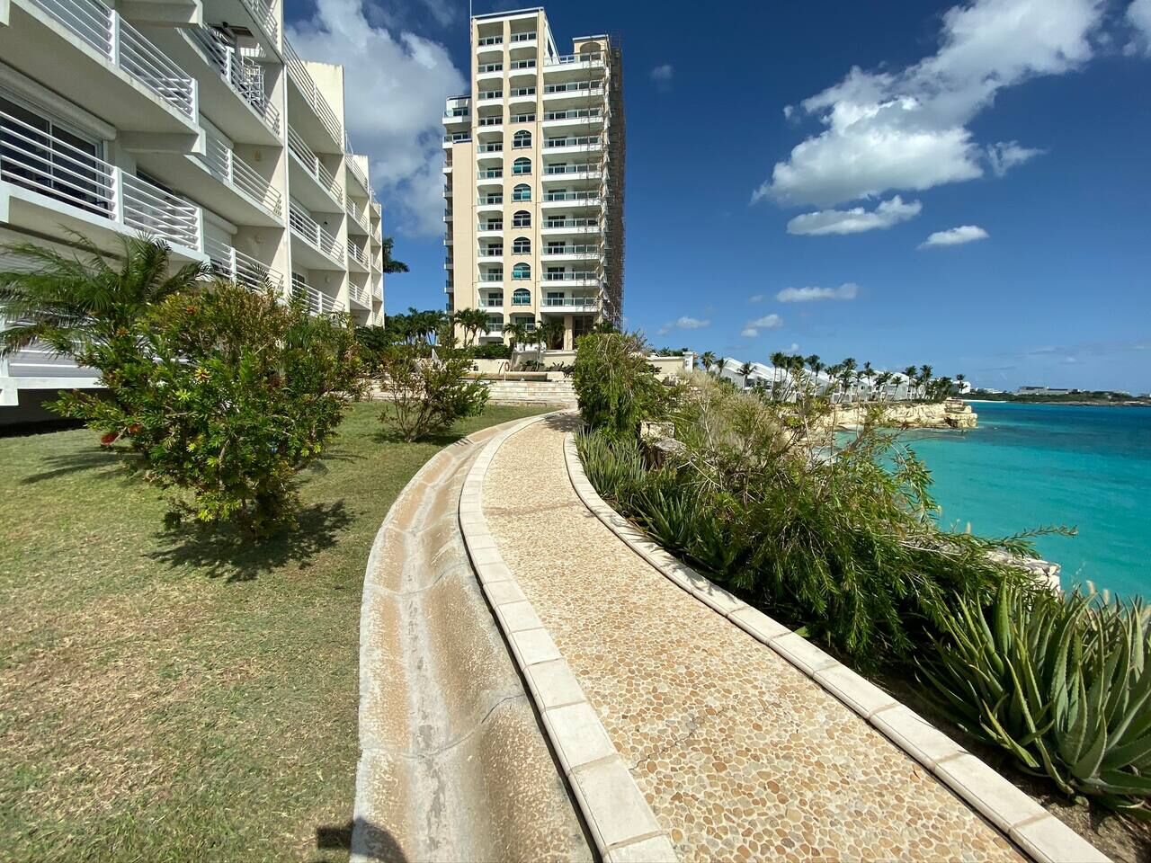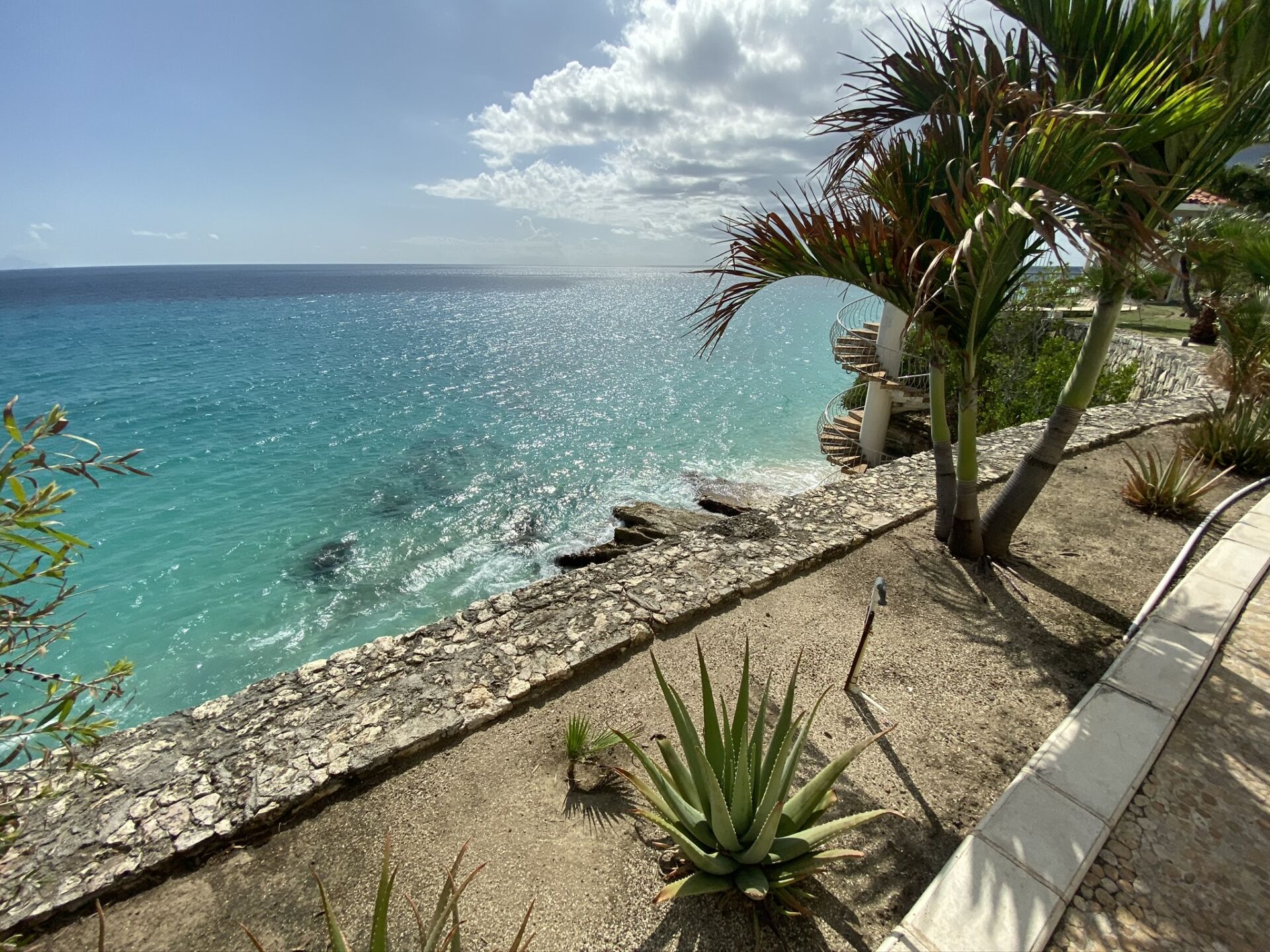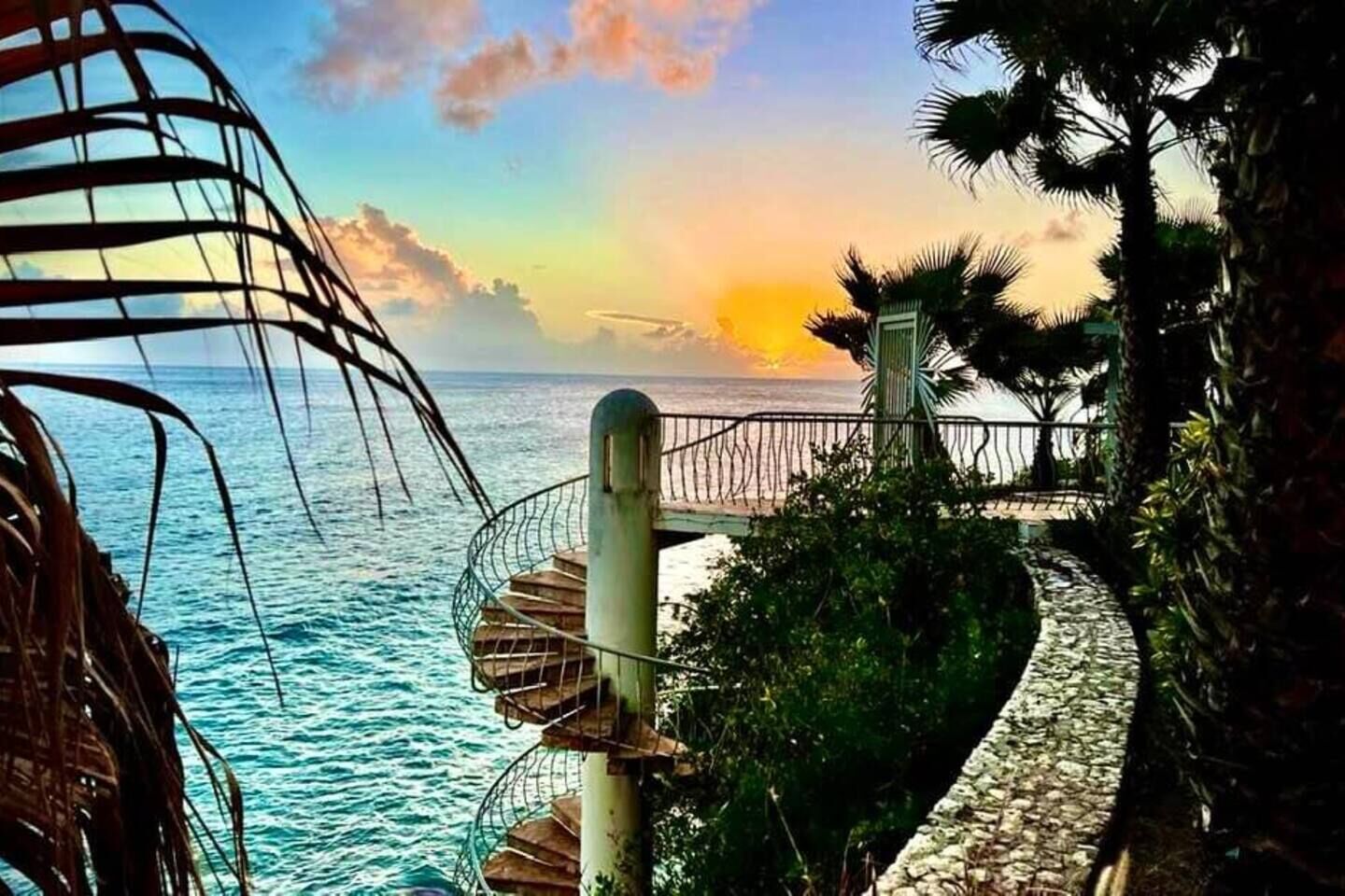 Follow the spiral staircase down to Cupecoy Beach, where a secluded cave and calm shoreline await. Whether swimming, snorkeling, or taking a sunset walk along the sand, the beach feels like a natural extension of your stay.