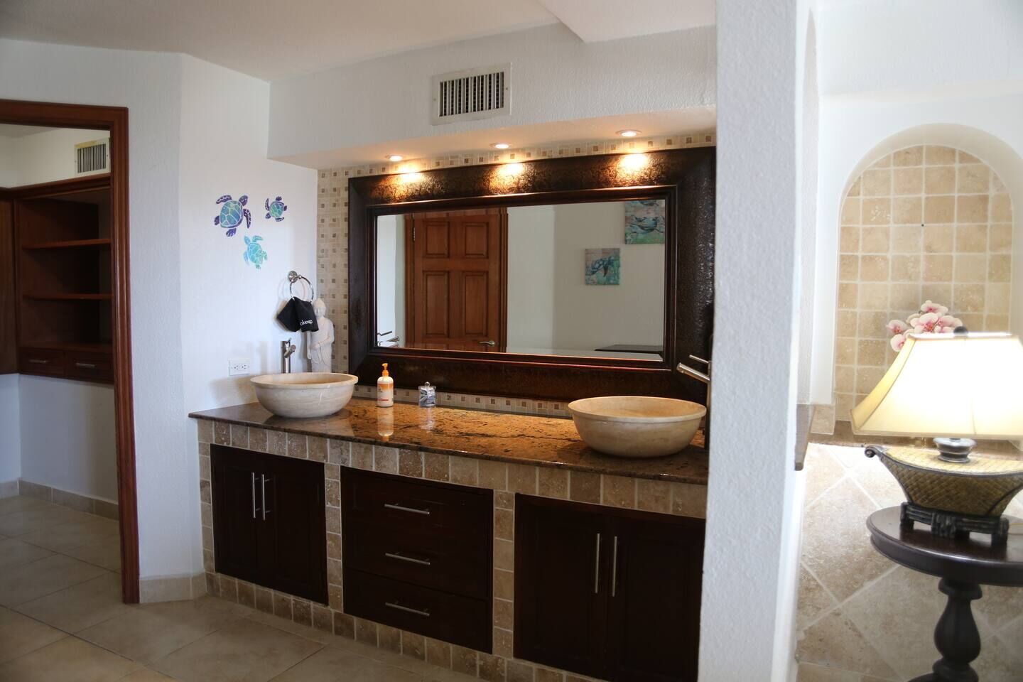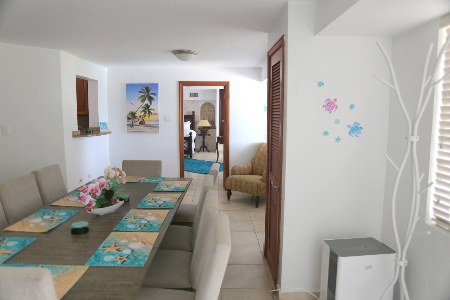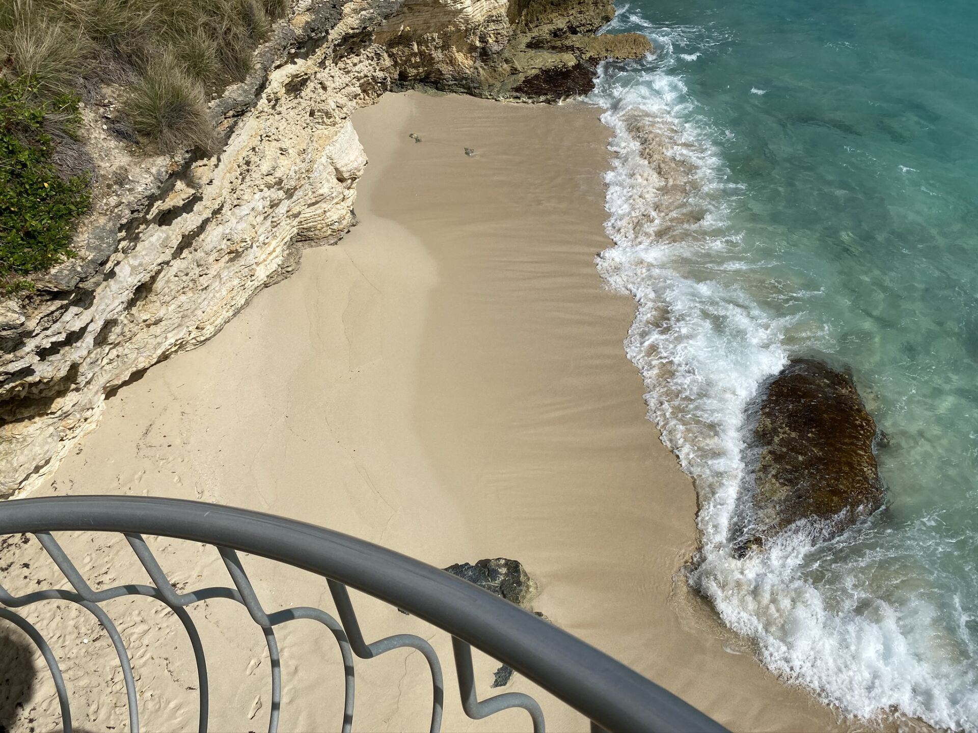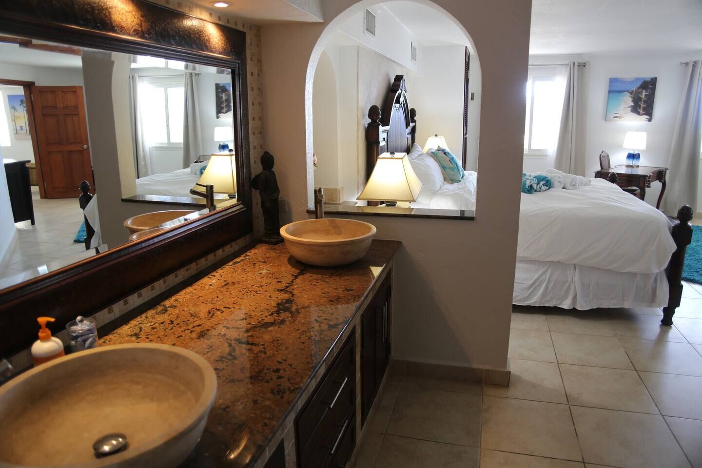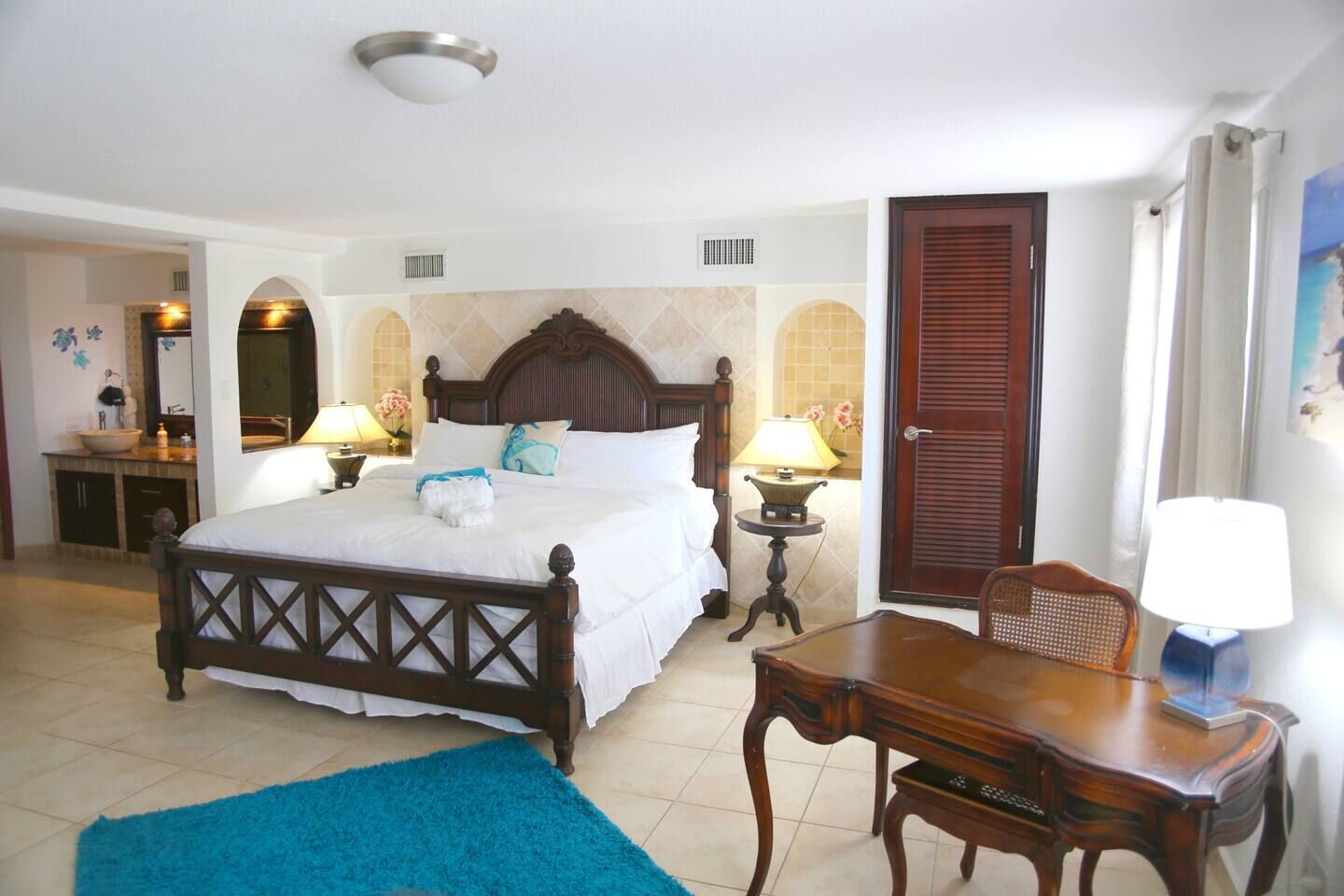 Step outside to your private patio for coffee in the morning or a glass of wine as the sun sets. From the back entrance, one of the resort’s pools is just steps away, overlooking Cupecoy Beach and the turquoise Caribbean Sea. A spiral staircase leads down to a secluded cave and beach, perfect for swimming, snorkeling, or sunset walks along the shore.
