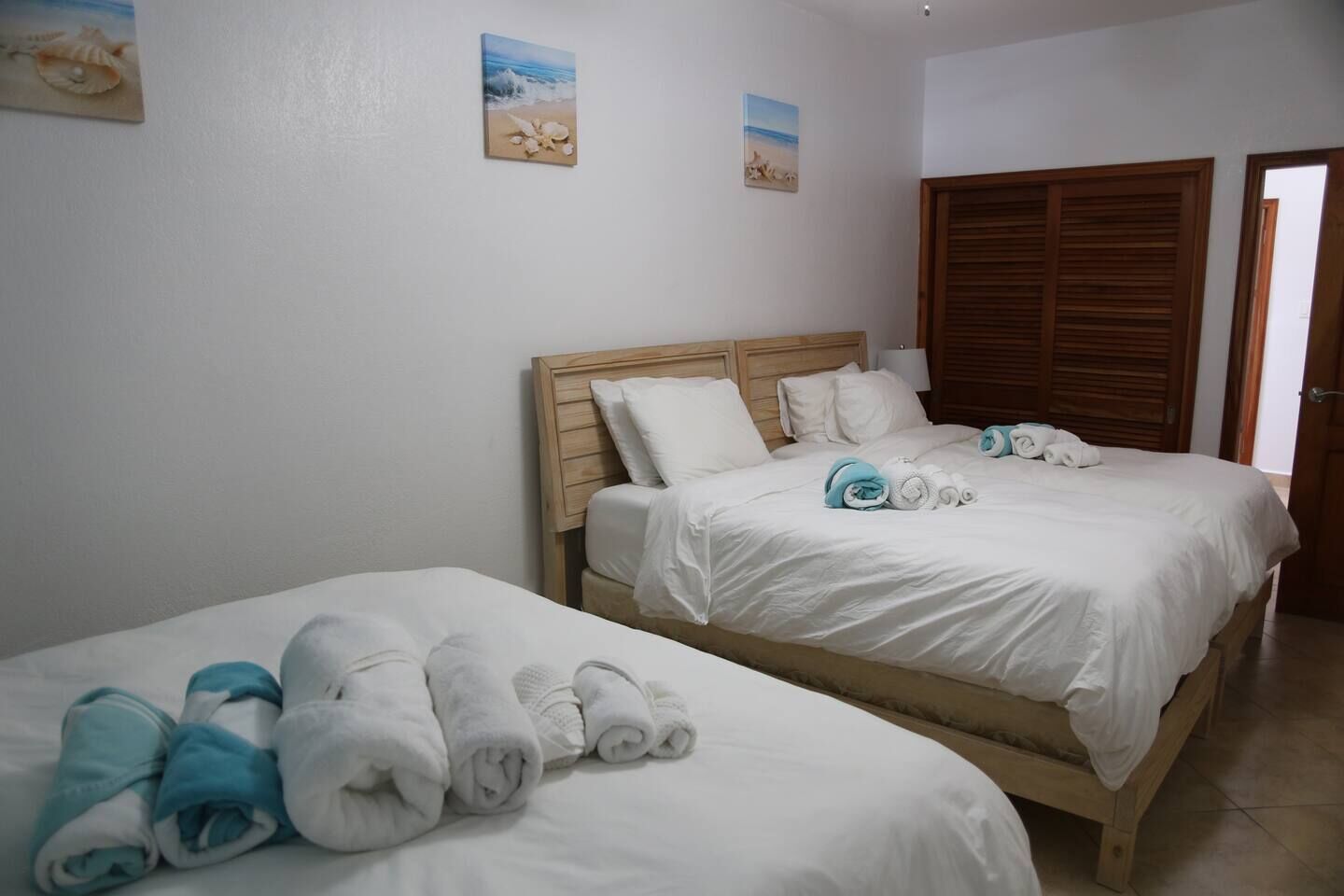 A small workspace with a printer allows you to stay productive without leaving the apartment. When it’s time to rest, the bedrooms offer a calm, comfortable retreat. The master bedroom features a king-size bed and direct access to the ocean-view balcony, while the guest bedroom includes a queen bed and two single beds. The sofa can also be converted into a pull-out bed if additional sleeping space is needed.