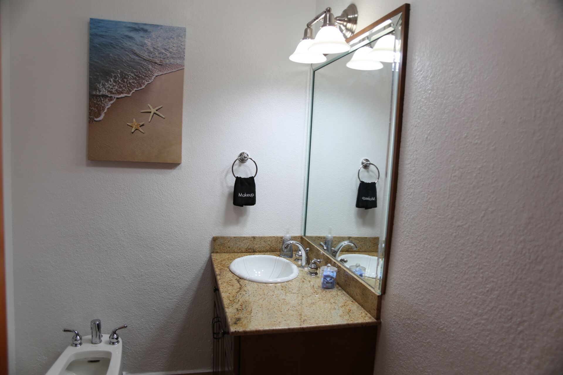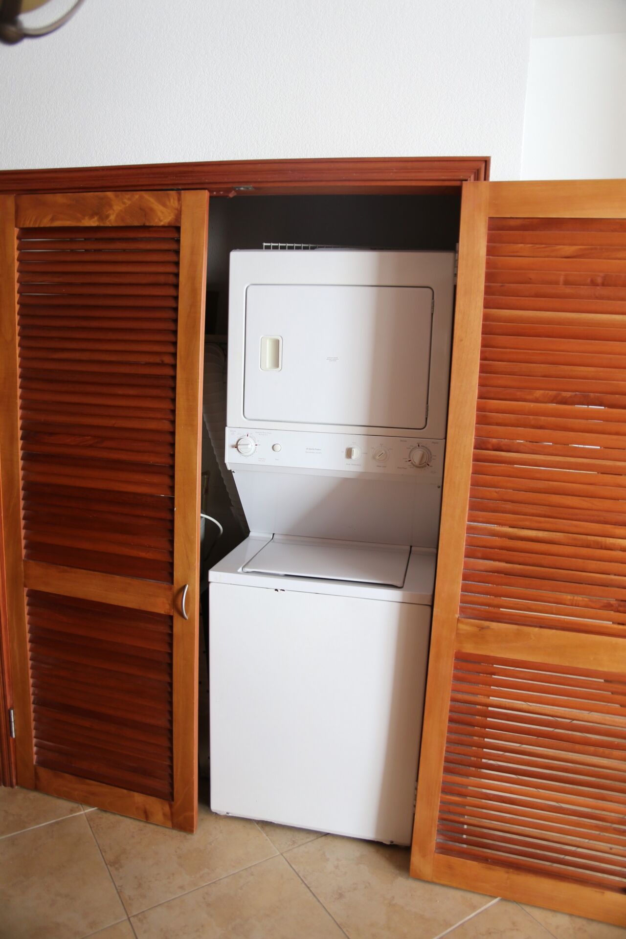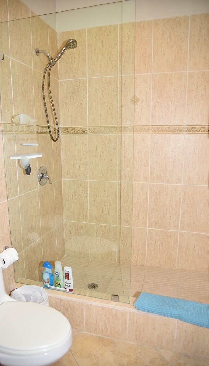 Both bathrooms are thoughtfully designed, with tiled showers, sinks, and toilets. The master bathroom also includes a bidet. A full-size washer and dryer are available in the apartment, making longer stays especially convenient.