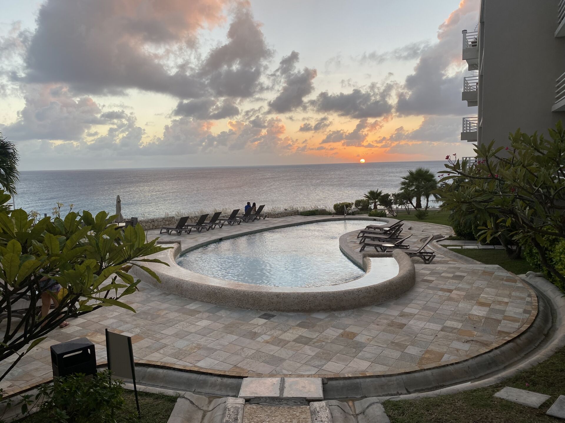 For guests who like to stay active, a Peloton bike is available. Outside, the resort offers three distinct pools: oceanside pools with sweeping views, sun loungers, and a waterfall feature, as well as a more secluded shaded pool tucked beneath the building.