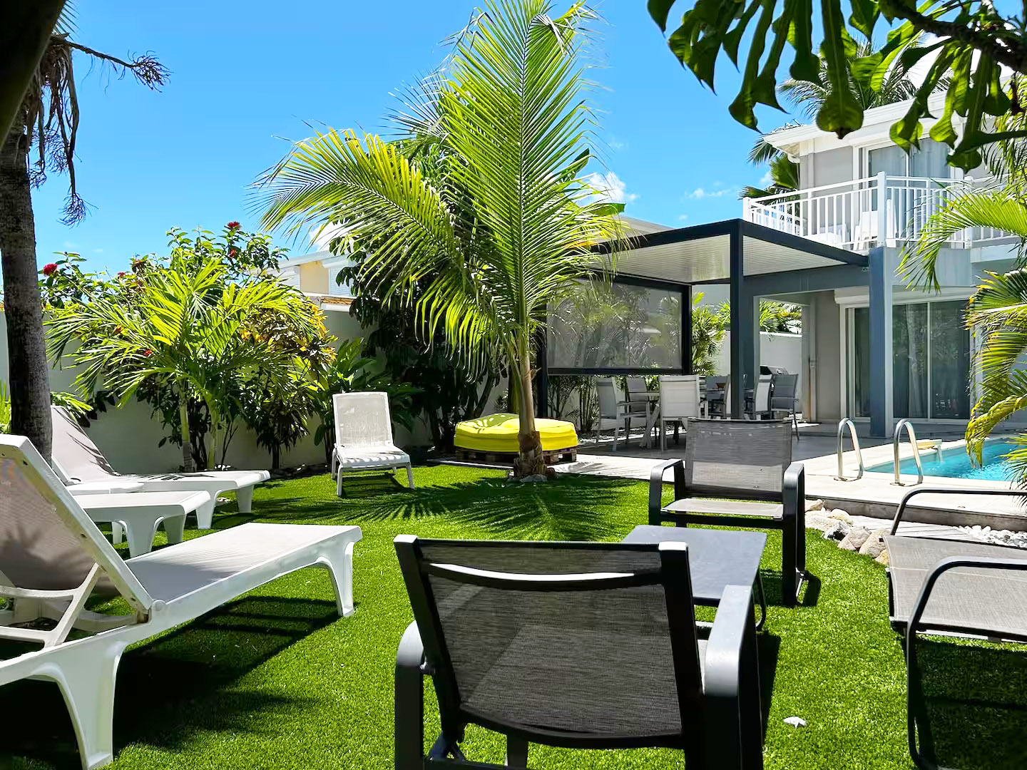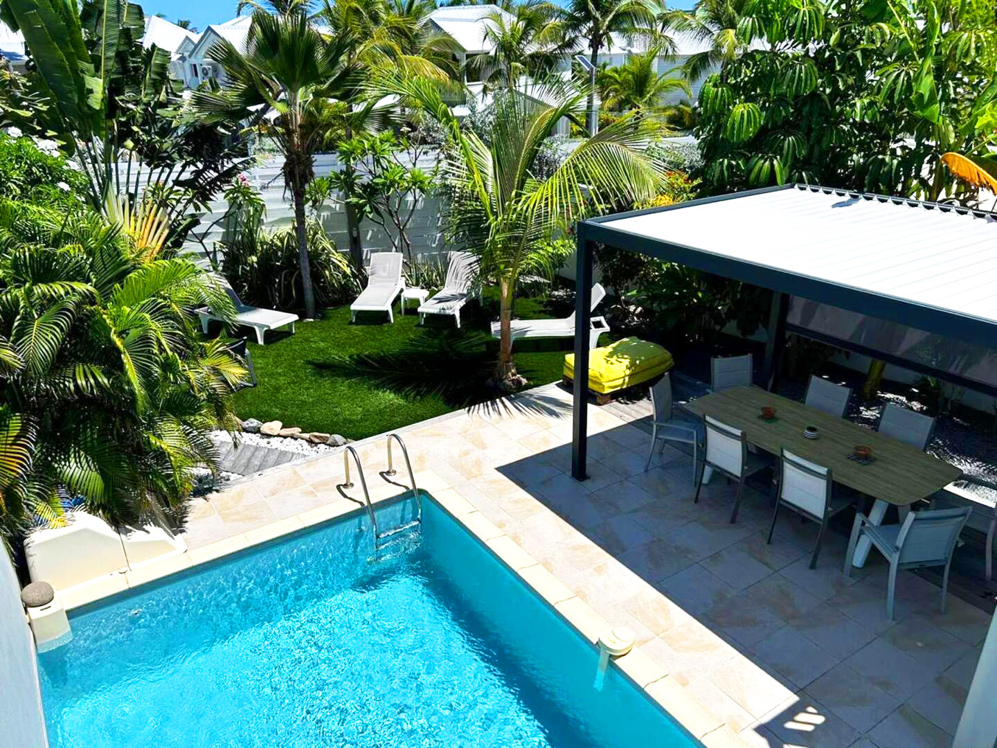 Conveniently close to all amenities (Grand Case airport, supermarkets, restaurants), it also offers a private garden, a private pool, secure on-site parking, and free Wi-Fi.