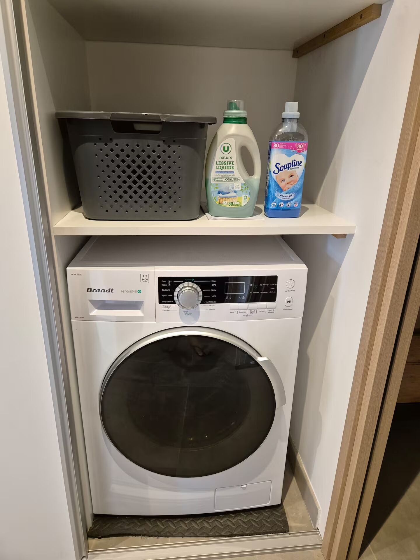 The fully equipped kitchen is designed for everyday cooking, with an oven, dishwasher, coffee maker, and all necessary cookware and utensils. It connects seamlessly with the outdoor spaces, making meals simple and enjoyable.