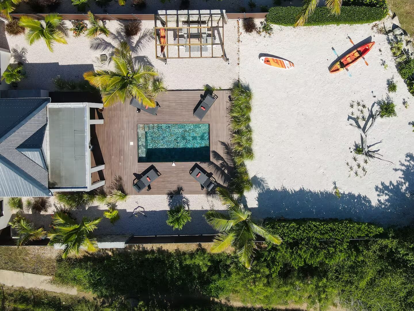 Private kayaks are available directly from the villa, offering a unique way to explore the coastline. Paddle across the bay to nearby islands, including the iconic Îlet Pinel, known for its beach restaurants and loungers. The surrounding marine park reveals sandbanks, snorkeling spots, and abundant wildlife — pelicans, rays, turtles, and a wide variety of birds.