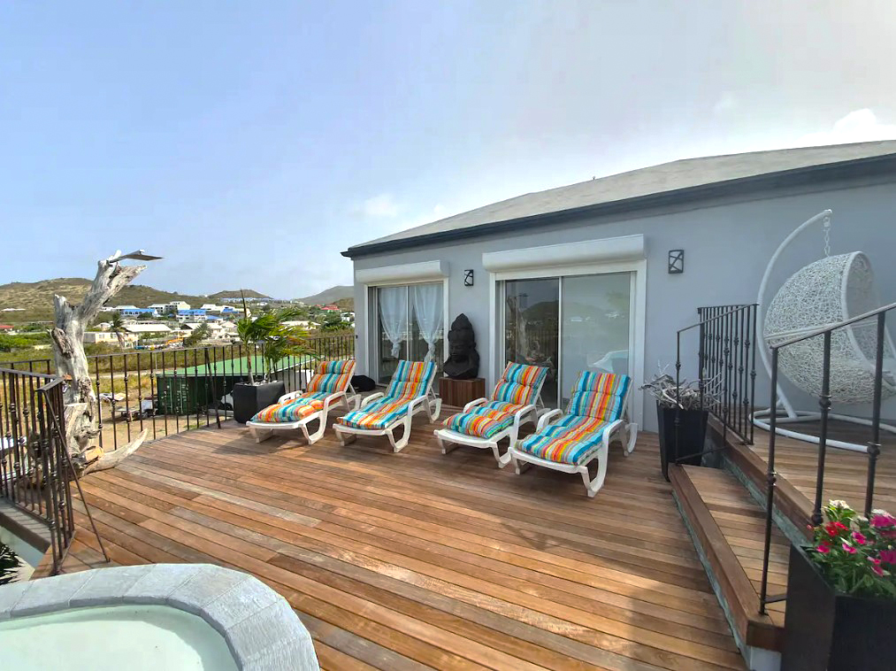 Principaux points saillants ✔ Piscine à débordement avec vue panoramique sur l’îlot Pinel et Saint-Barth ✔ Réservoir d’eau et générateur inclus : indispensable pour un séjour sans souci ! ✔ Forfait bébé en option La propriété Conçue pour une détente absolue et des vues inoubliables, cette élégante villa de 4 chambres surplombe les eaux turquoise de Cul-de-Sac et l’îlot Pinel voisin. À l’intérieur, la villa dispose d’un spacieux séjour, d’une cuisine entièrement équipée avec des appareils électroménagers haut de gamme (dont une cave à vin et une machine Nespresso), et de chambres joliment décorées alliant confort et intimité. À l’extérieur, profitez de deux terrasses, d’un coin salon couvert avec bar et d’une piscine à débordement privée avec chaises longues, le tout face à un panorama digne d’une carte postale. Accès et extras ✔ Parking privé gratuit pouvant accueillir jusqu’à 4 véhicules ✔ Accès de plain-pied ✔ Piscine à débordement avec chaises longues ✔ Barbecue à gaz ✔ Wi-Fi haut débit ✔ Ménage quotidien Forfait bébé en option (sur demande) : Comprend un berceau, une poussette, une chaise haute, un siège auto et plus encore. Contactez-nous pour connaître les tarifs.