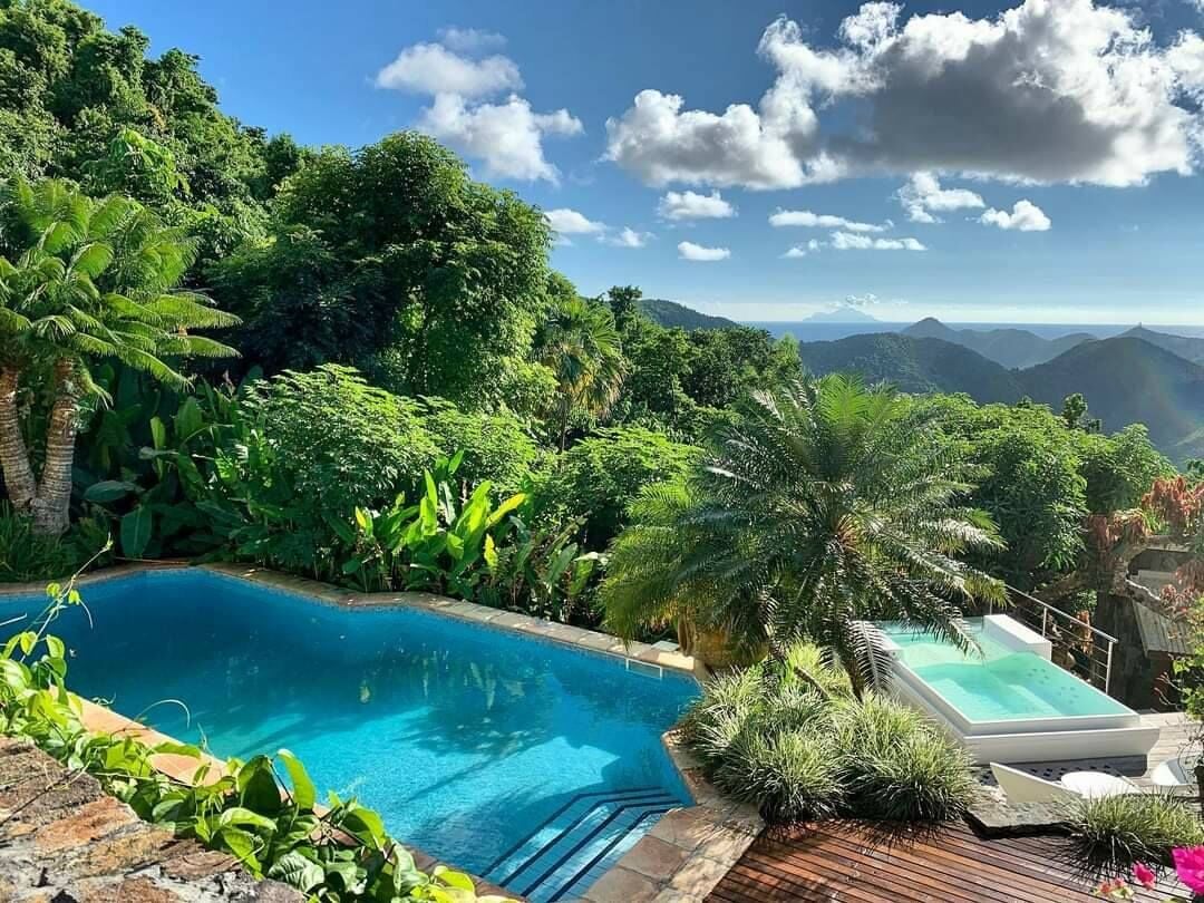 This one is special. Paradise Peak sits at the highest point of the island — and I mean that literally. Getting there requires a climb, but what Tess and Hugh have created up there is unlike anything else on St Martin. They’re both from here, and it shows in every detail. The property is clothing-optional throughout, the views are extraordinary, and the sense of freedom — physical and otherwise — is complete. It’s the kind of place you don’t forget.